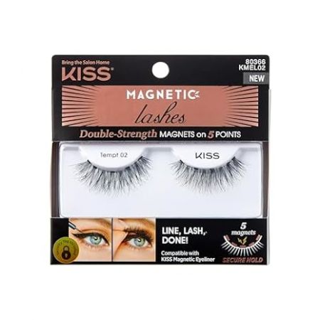 KISS Magnetic Lashes, Tempt, 1 Pair Synthetic False Eyelashes With 5 Double Strength Magnets, Wind Resistant, Dermatologist Tested Fake Lashes Last Up To 16 Hours, Reusable Up To 15 Times Black
